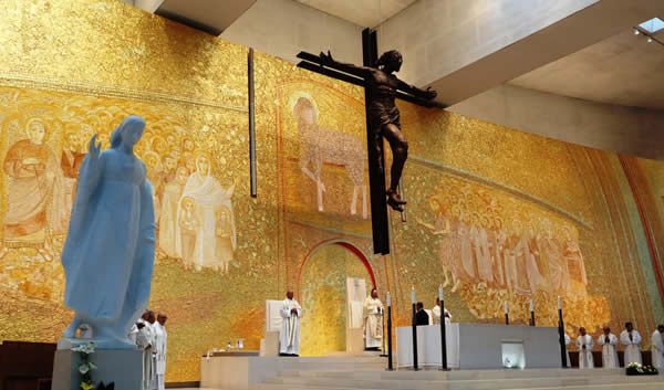 This modern and imposing basilica was inaugurated in 2007 to accommodate the increasing number of pilgrims. With a capacity of more than 8,000 people, it stands out for its contemporary design and minimalist architecture.