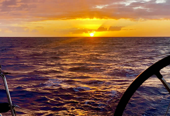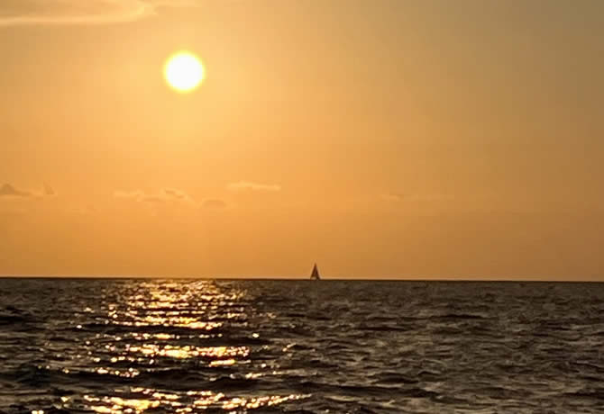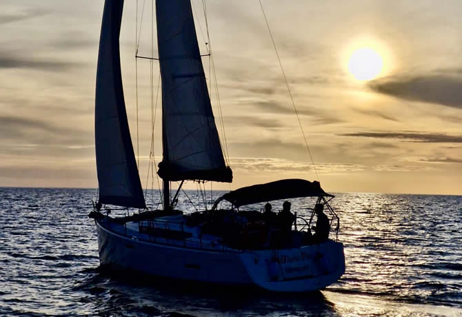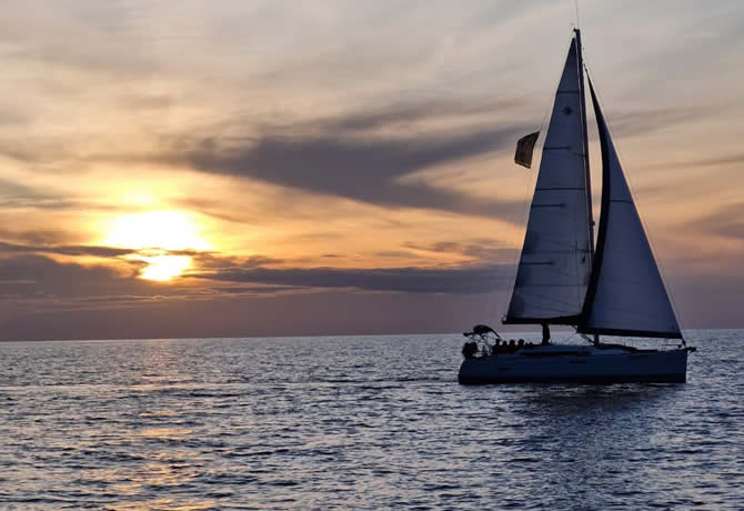 Com o nosso skipper profissional incluído, não terá qualquer preocupação. O serviço consiste num agradável passeio Privado à vela Por dol Sol, onde o silêncio do vento substitui o ruído dos motores. O ponto alto da viagem é a paragem estratégica em pleno oceano para observar o sol a mergulhar no horizonte, tingindo o céu com cores vibrantes.