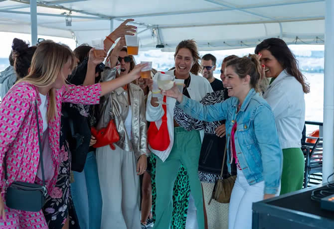 A alma deste passeio de Barco é a animação. Junte-se a nós e descubra Lisboa como nunca antes, rodeado de pessoas que, tal como você, procuram celebrar a vida. Enquanto o sol se põe no horizonte, criando um espetáculo de cores sobre o Tejo, a boa música dita o ritmo da tarde. É o cenário perfeito para fazer novos amigos, dançar e brindar com um copo de vinho de boas-vindas.